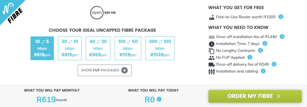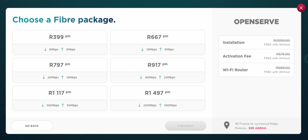 If you are just moving in or looking to upgrade your current ADSL line you can opt for fibre installed by Openserve. There are several internet service providers that offer packages with Openserve.